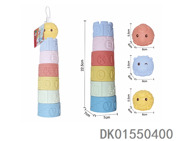 Soft rubber animal stacking tower (mixed) 7pcs