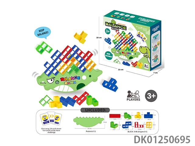 Board game rocking, folding, tetris, balanced building blocks, cartoon dinosaurs (48 pieces)