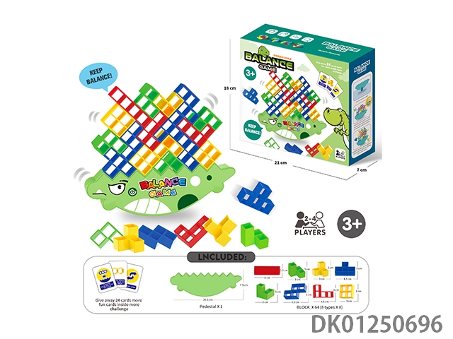Board game rocking, folding, tetris, balanced building blocks, cartoon dinosaurs (64 pieces)