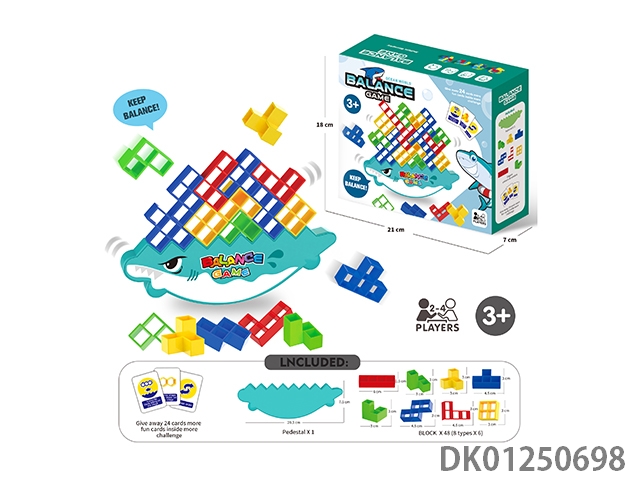 Board game rocking, folding, tetris, balanced building blocks, cartoon shark (48 pieces)