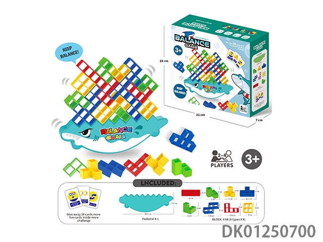 Board game rocking, folding, tetris, balanced building blocks, cartoon shark (64 pieces)