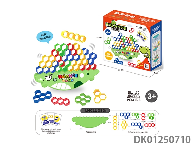 Board game stacked music, balanced building blocks, russian hexagonal block cartoon dinosaur (48 pieces)