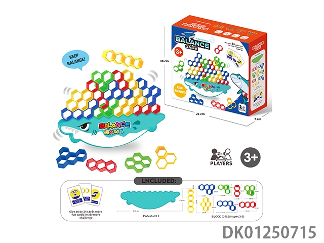 Board game stacked music balanced building blocks russian hexagonal block cartoon shark (48 pieces)