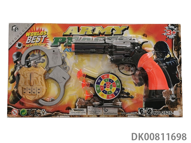 Revolver with handcuffs badge round target shooting suit