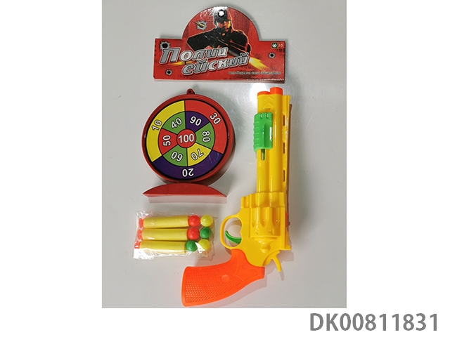 Soft bullet pistol with round target police suit