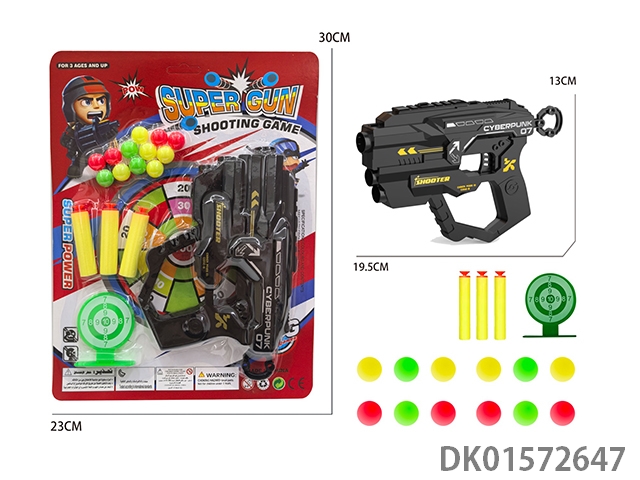 Soft bullet gun paired with bowling ball