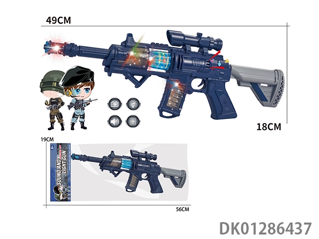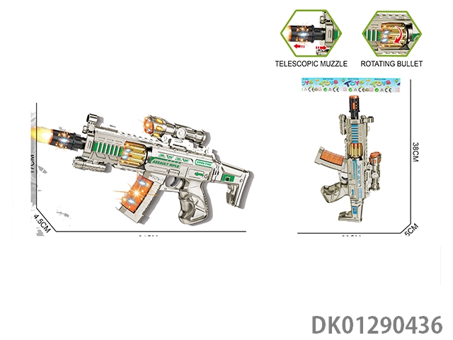 Telescopic electroplated sound and light gun with gun head