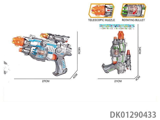 Bullet rotating gun head telescopic mechanical electroplating sound and light gun, 6pcs/box