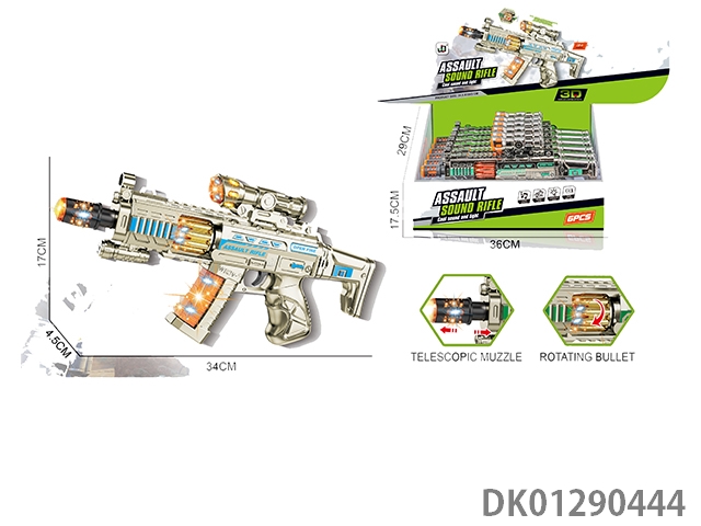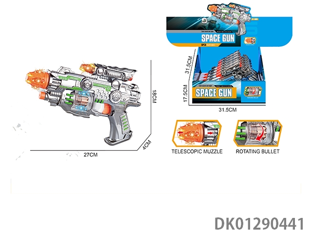 Telescopic electroplated sound and light gun with gun head, 6pcs/box
