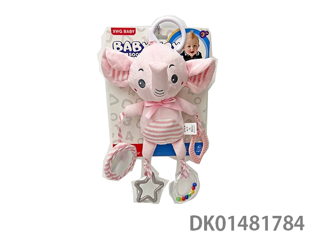 Pink elephant rubber ring baby soothing plush bed hanging