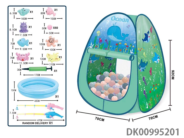 Ocean toy tent with 50 balls and 10 fishing sets
