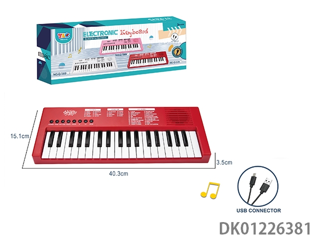 37 Key multifunctional electronic keyboard with microphone, usb connection cable (red)