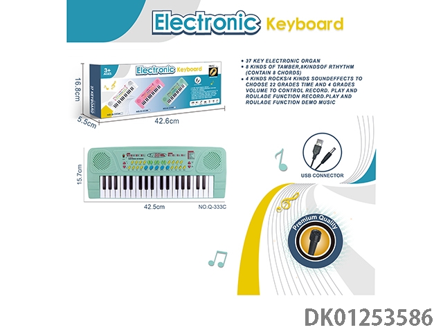 37 Key multifunctional electronic organ with microphone and usb interface cable (black)