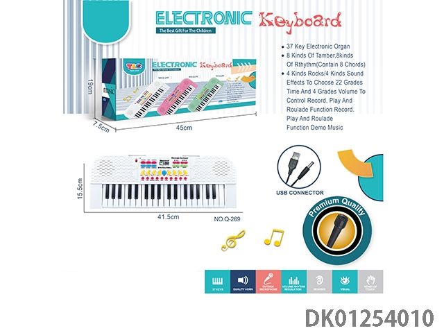 37 Key multifunctional electronic organ with microphone, usb interface cable (white)