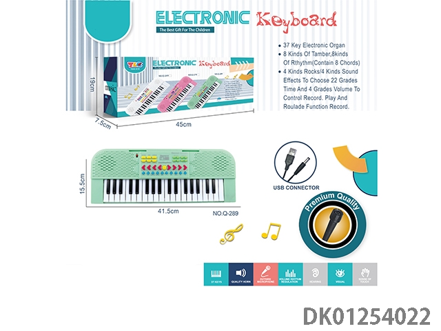 37 Key multifunctional electronic organ with microphone and usb interface cable (green)