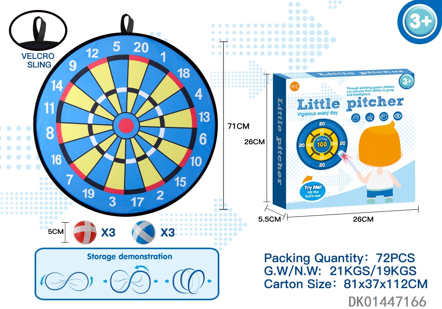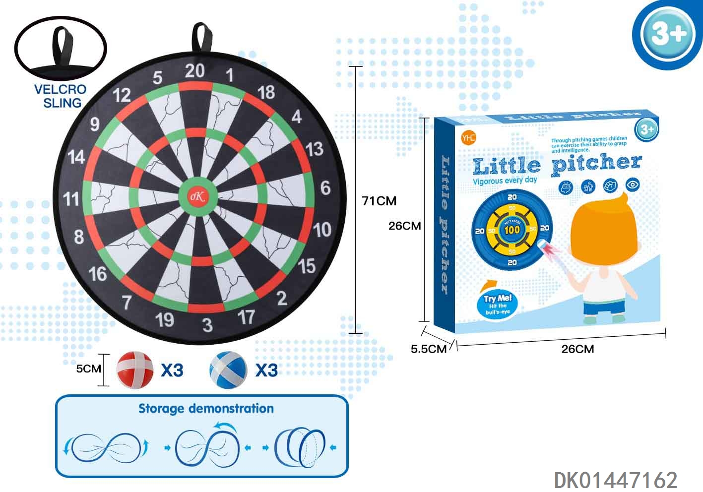71Cm dart target with 6 balls set