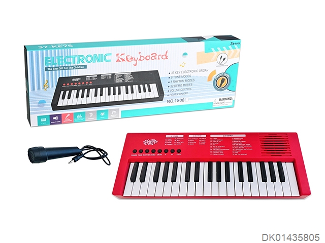 37 Key red electronic keyboard, ear hook microphone, usb data cable, and strap