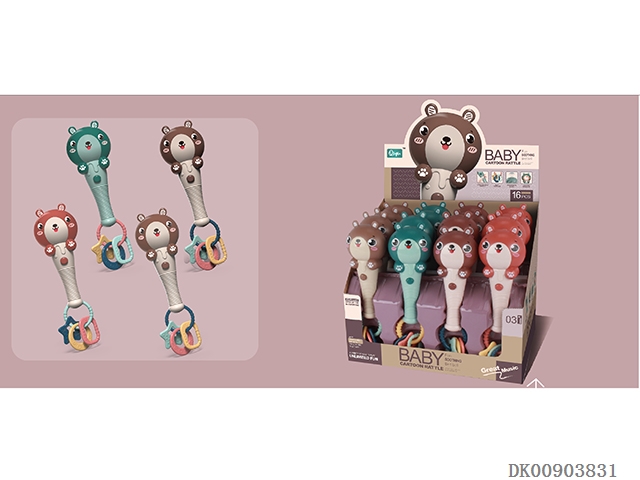 Cute cartoon bear stick with soft rubber ring (light music) 16pcs/box