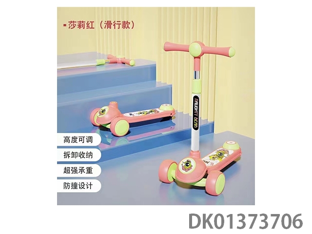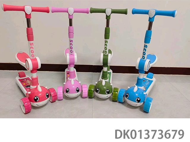 Children’s scooter with flashing wheels and patterned pedals