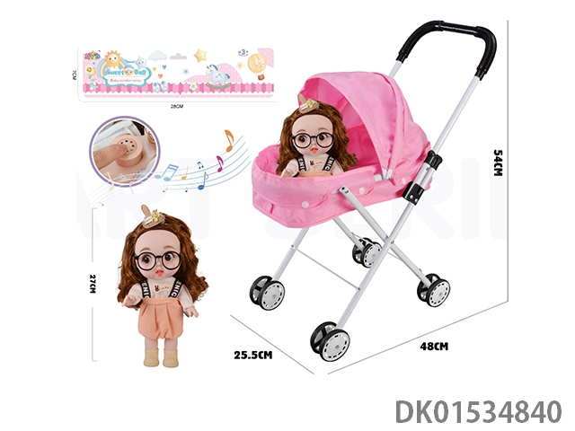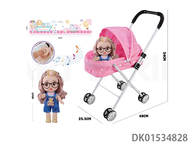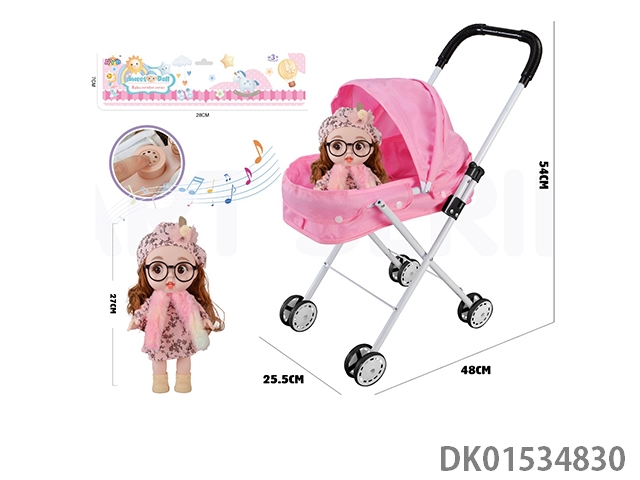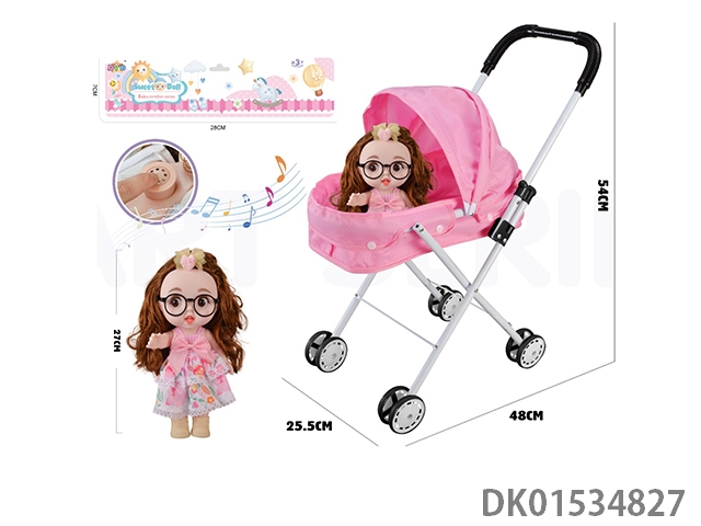 Iron handcart with 16 inch cute baby (with ic, ice and snow theme song, plastic body)