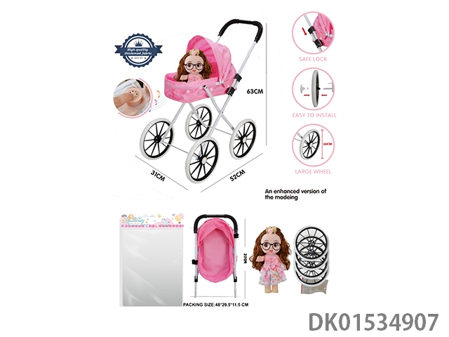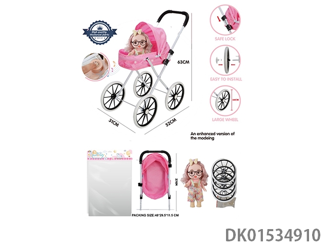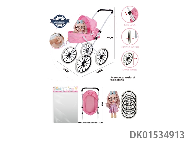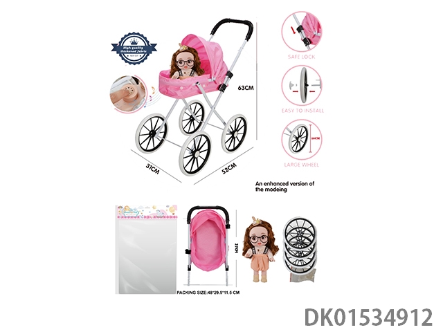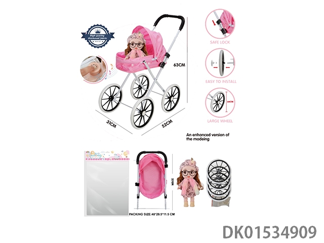 Iron handcart/thickened fabric/paired with 16 inch cute baby (with ic, ice and snow theme song, vinyl body)
