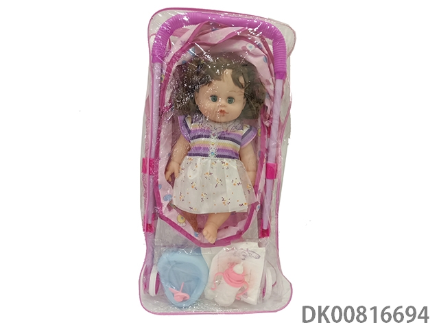 Environmental protection iron cart and plastic lined live eyes doll (drink water, urinate with ic16 sound)