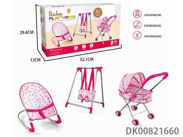 Combination 3-piece set (iron cart, swing, rocking chair)