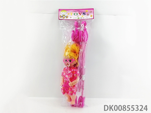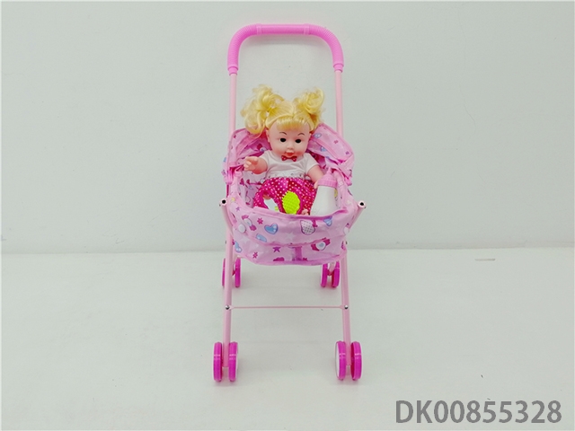Iron trolley with all enamel doll and bottle and headdress and comb and mirror