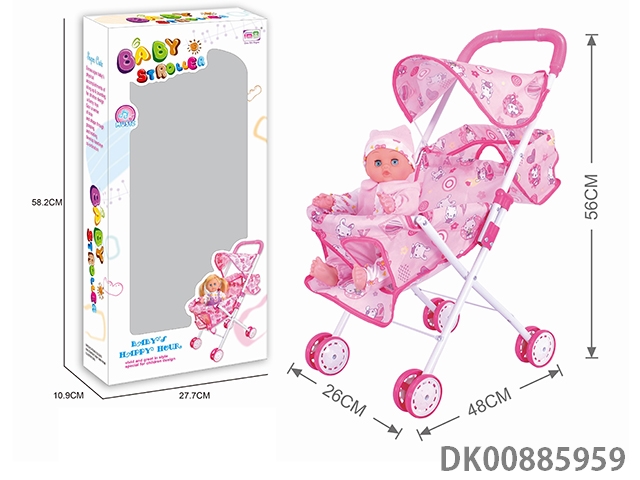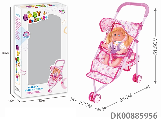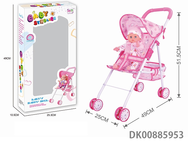 Baby sunshade trolley and 14 4-tone doll (pink iron)
