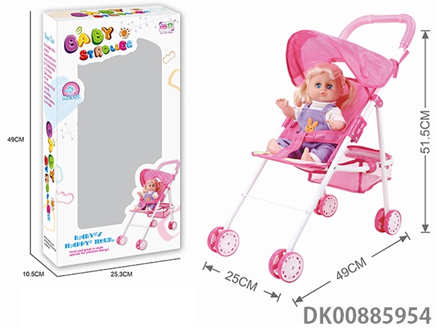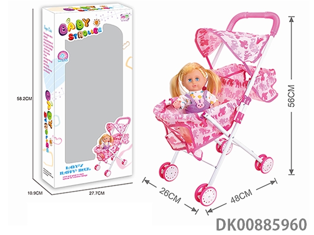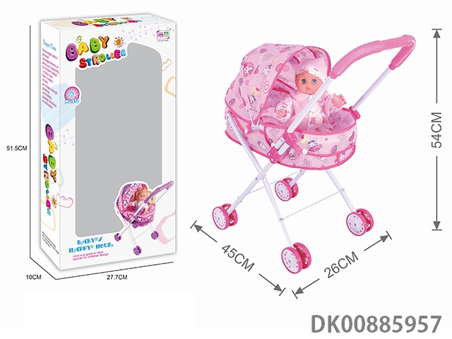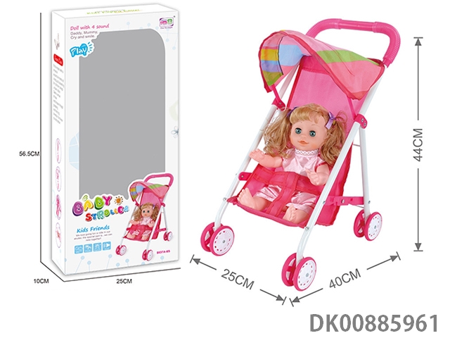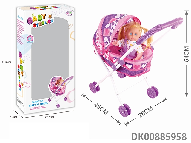 Baby sunshade trolley and 14 4-tone doll (white iron)