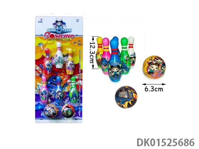M team pu bowling set bottles: height 12.3cm, balls: 6.3cm 6 bottles and 2 balls