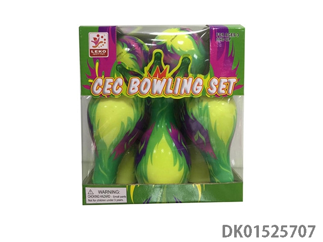 Pu bowling set bottle: 12.3cm x 6.8cm, ball: 7cm 6 bottles and 2 balls