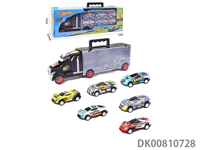 Portable gift box container trailer with 6 alloy racing cars (1 side)