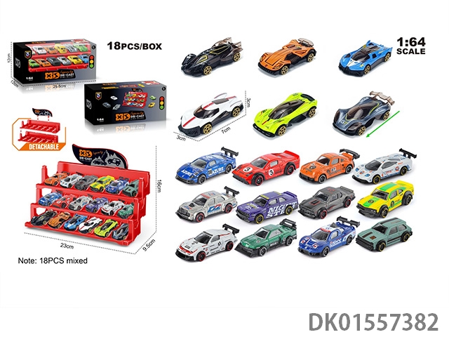 English 1:64 sliding die casting zinc alloy parking lot car model 18 pieces (18 randomly mixed)