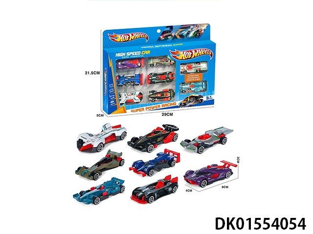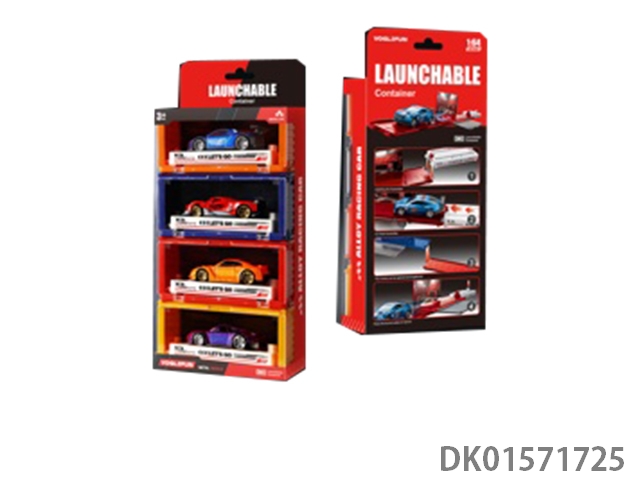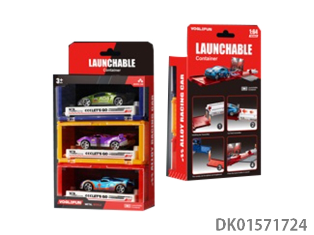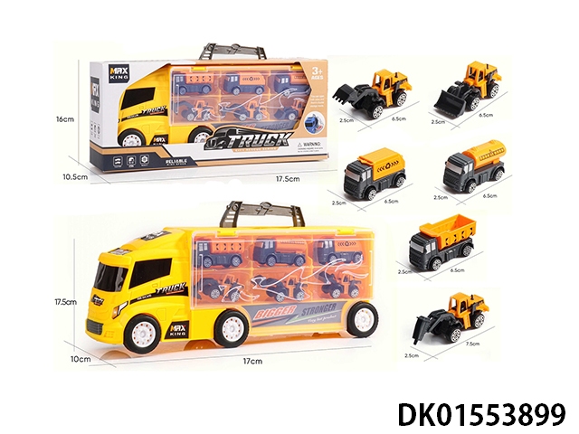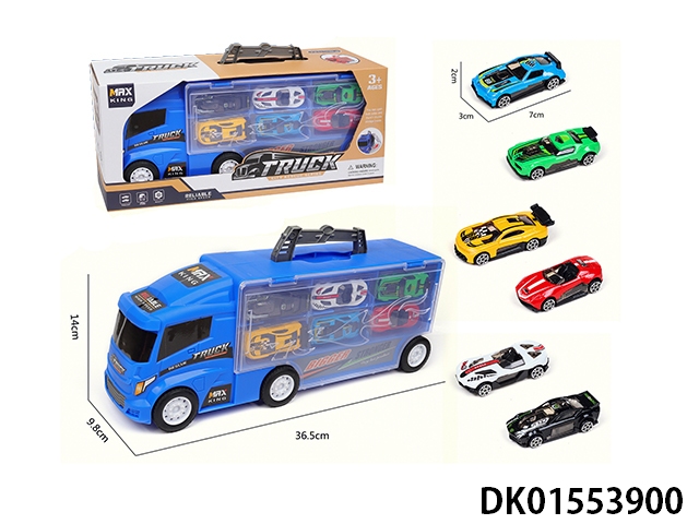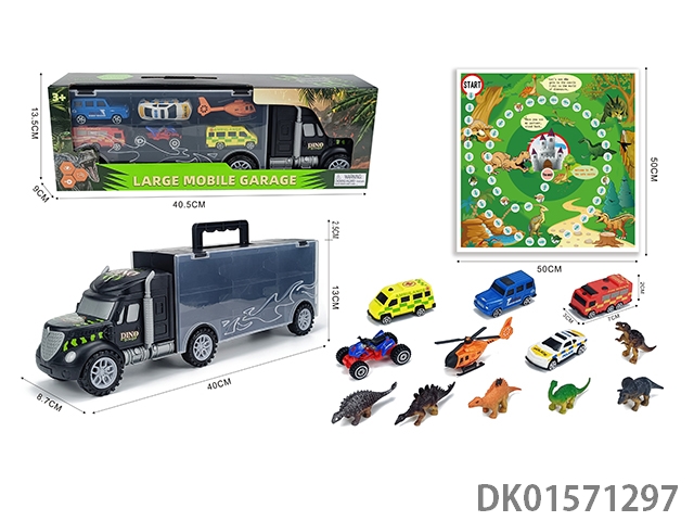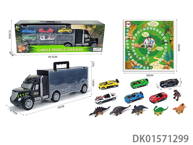 Handheld gift box sliding container truck with 6 sliding alloy racing cars, 6 dinosaurs, and 1 map
