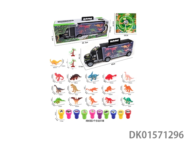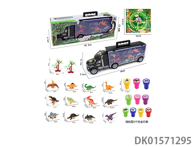 Handheld gift box sliding container truck with 12 dinosaurs, 2 trees, 2 seals, and 1 map