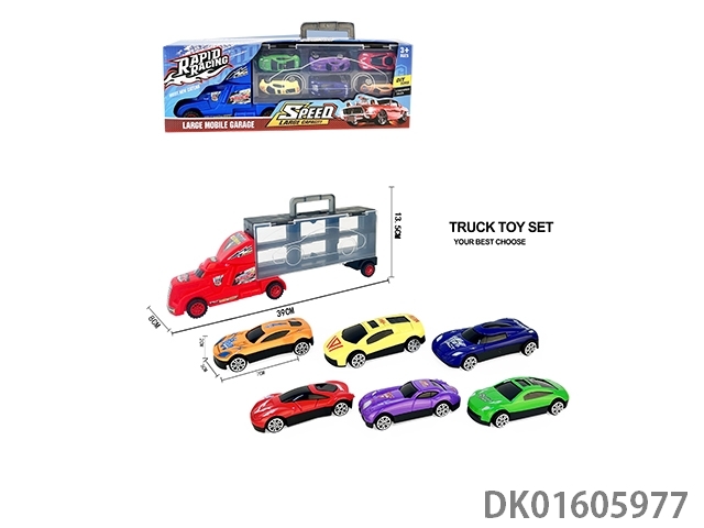 Handheld gift box sliding container truck with 6 sliding alloy sports cars