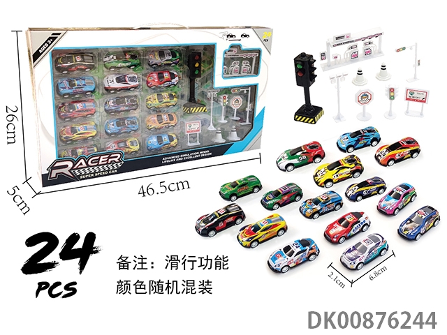 Sliding tin car 24pcs set