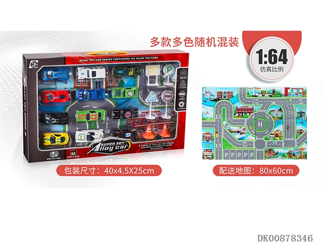 12Pcs alloy simulation vehicle, map and road sign (16 multi-color random mix)