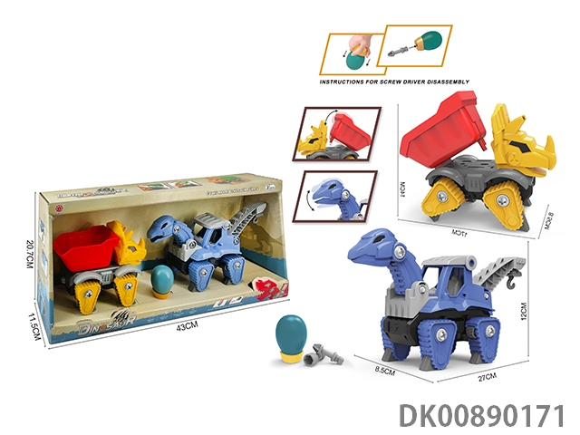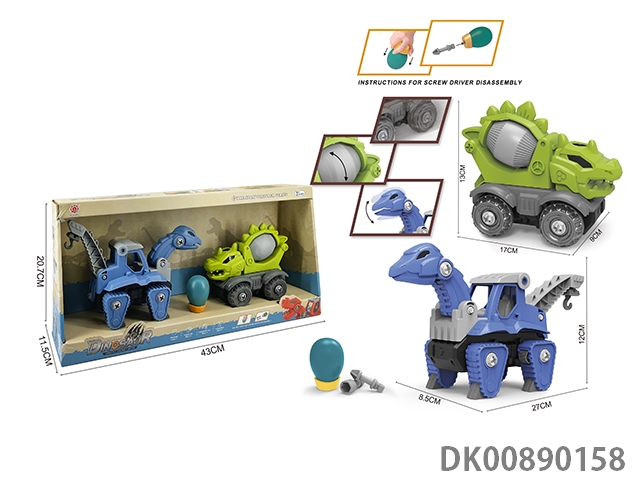 Taxi function diy brachiosaurus engineering vehicle and 3-corner dragon sanitation vehicle 2pcs/box