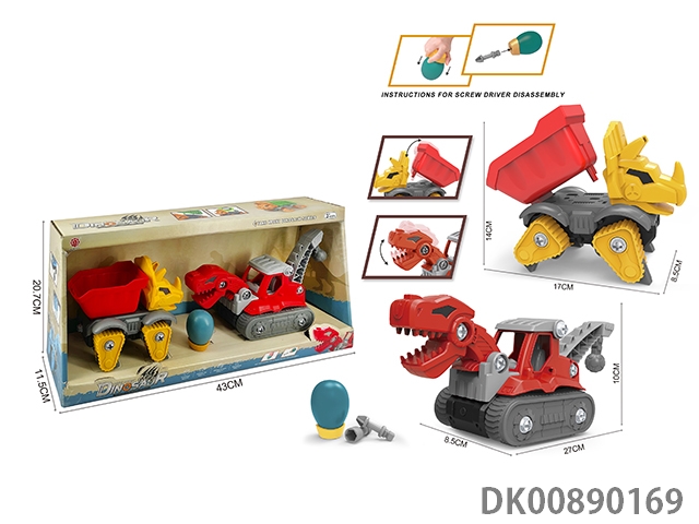 Taxi function and sound diy brachiosaurus engineering vehicle and 3-corner dragon tipper 2pcs/box