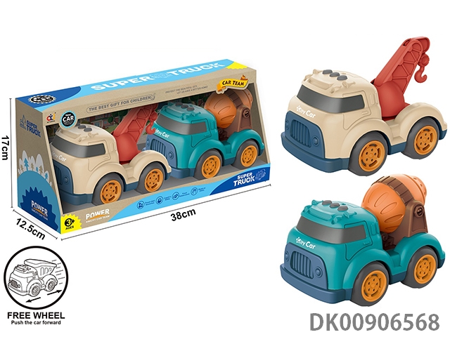 Cartoon sliding engineering vehicle (crane and mixer)