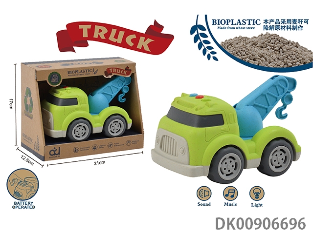Straw degradable cartoon taxi engineering vehicle with light and music (crane)