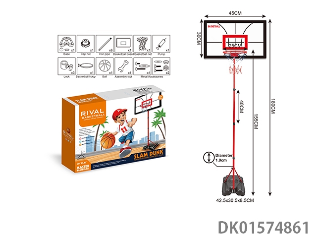 Plastic frame vertical basketball hoop with four iron pipes and square feet