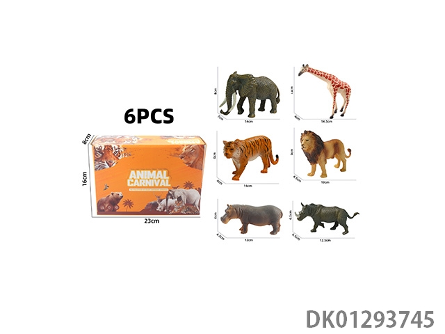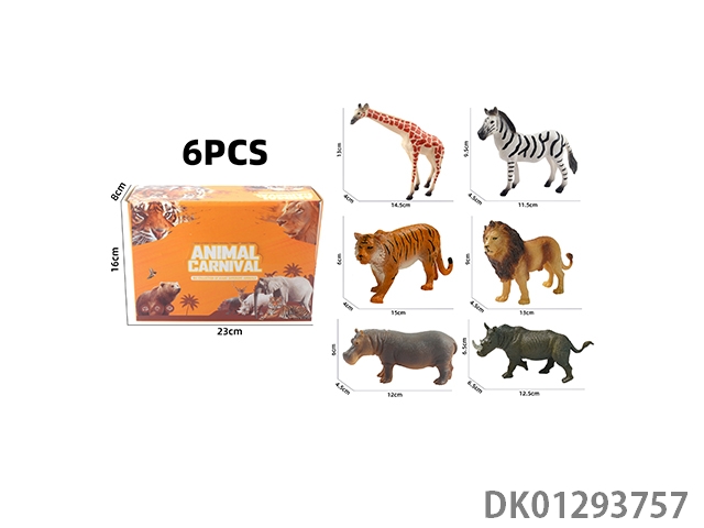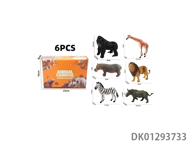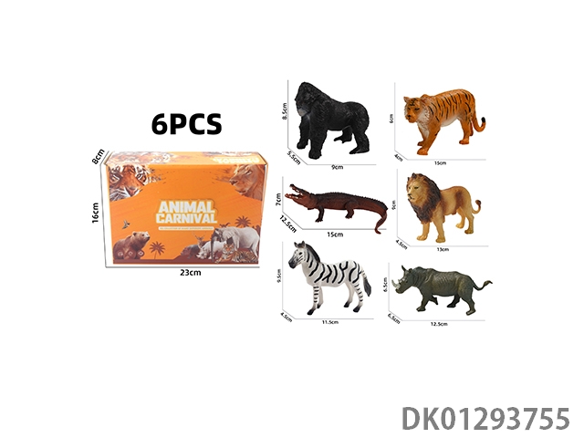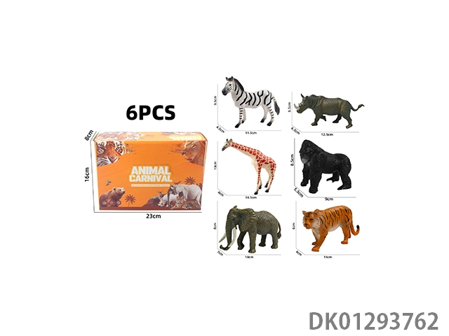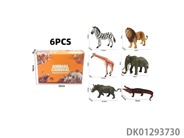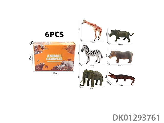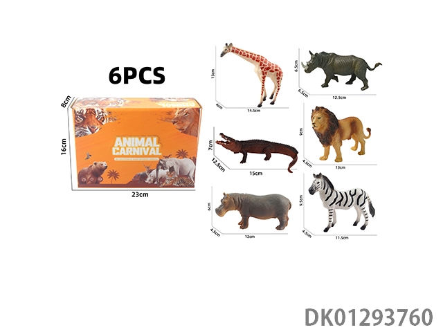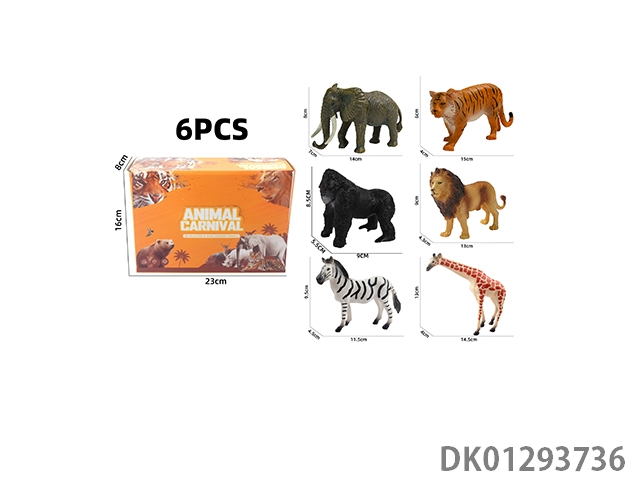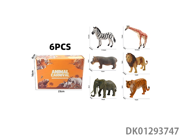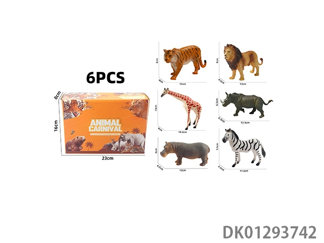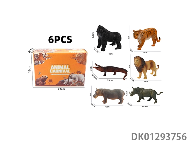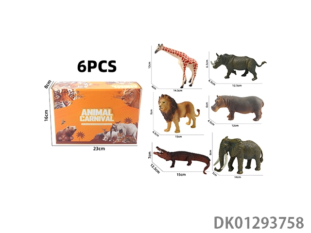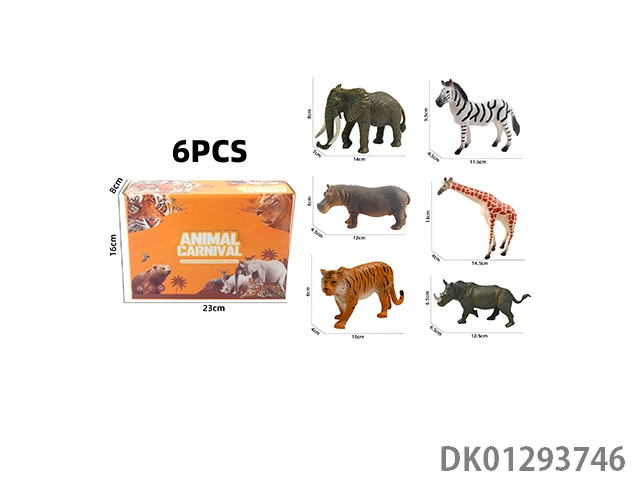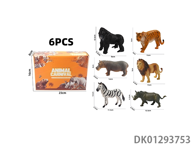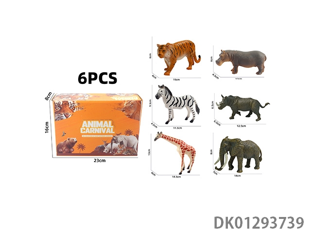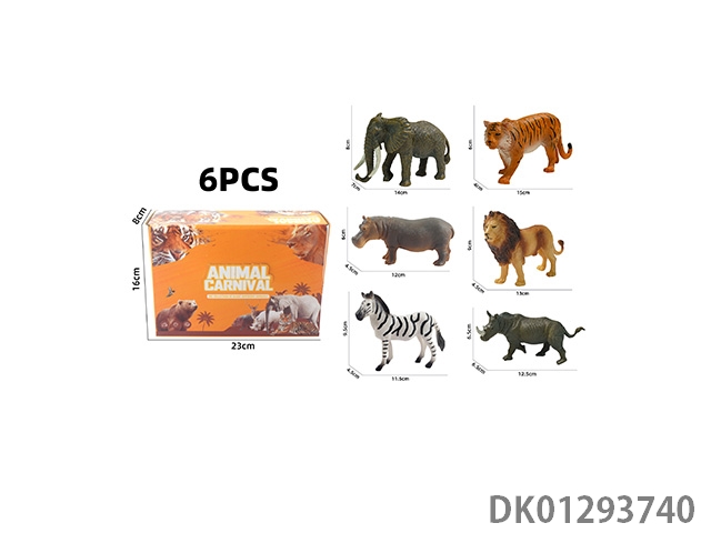 Elephant, tiger, hippopotamus, lion, rhinoceros, zebra, 6 color boxes with semi hollow animal models and wild animal themes, 6pcs/box