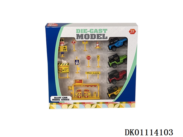 Alloy cars and road signs (4 cars)