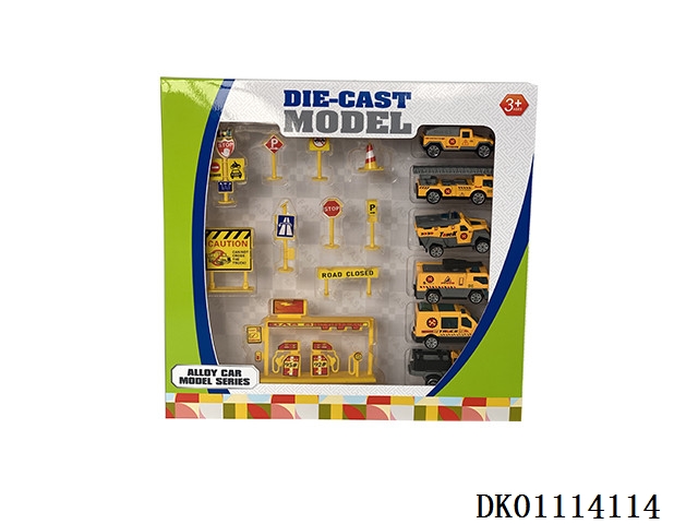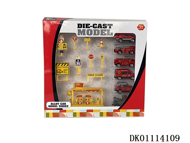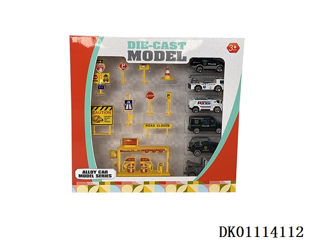 Alloy cars and road signs (6 cars)