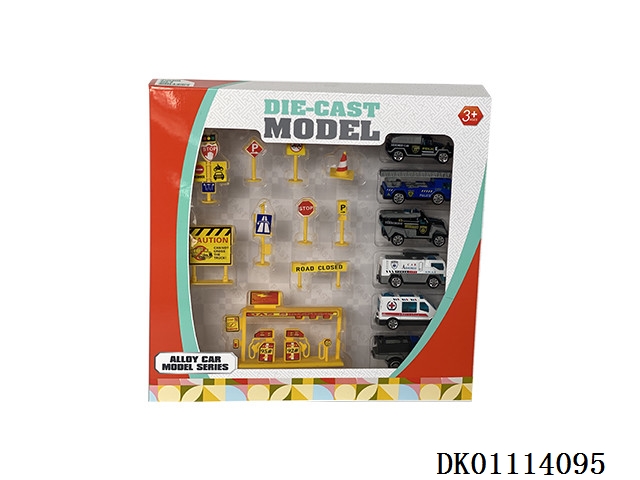 Alloy cars and road signs (6 cars)