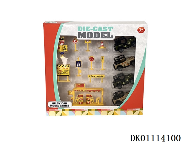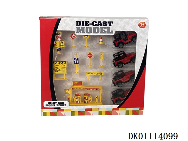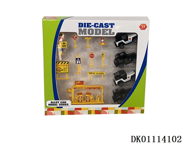 Alloy cars and road signs (4 cars)