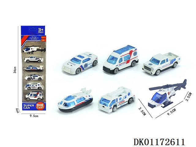6 Strip mounted 1:64 alloy police cars and aircraft (6 mixed)